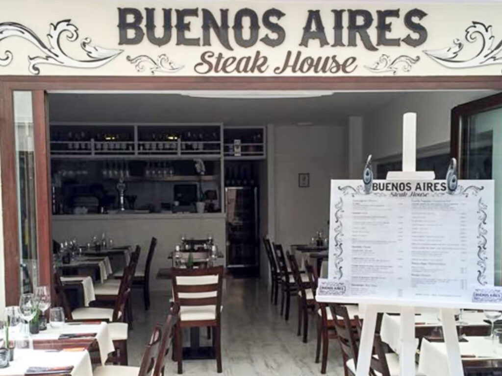 In der Hauptsaison bietet das Buenos Aires Steakhouse einen kleinen Außenbereich an, der die zahlreichen Gäste, wie Motten das Licht anzieht. Schon kurz nach Beginn der Öffnungszeiten sind diese beliebten Plätze vergeben.