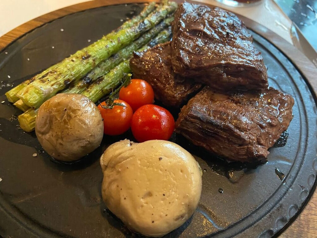 Das Fleisch ist butterzart und schmilzt auf der Zunge dahin. Ein Hochgenuss für alle Steakliebhaber.