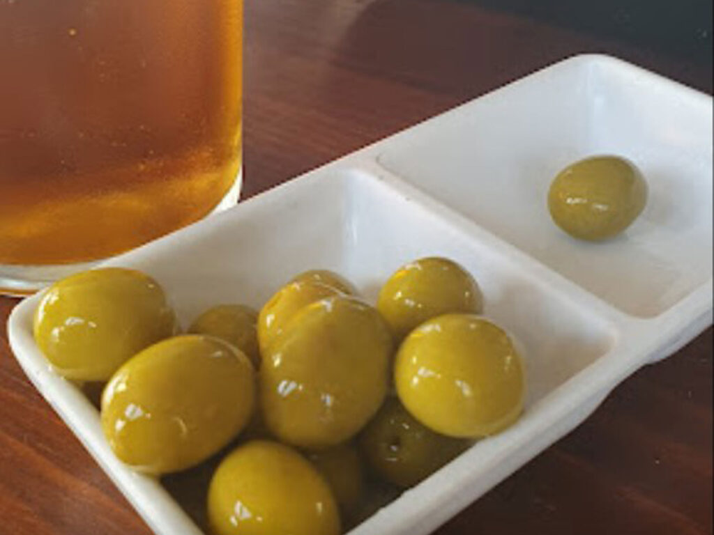 Möchte man nur ein Getränk zu sich nehmen, ist der Gast hier genauso gerne gesehen und zu einem kühlen Bier wird eine Schale mit Oliven gereicht. Der Geschmack dieser etwas salzigen grünen Oliven ist sehr intensiv und einzigartig.