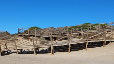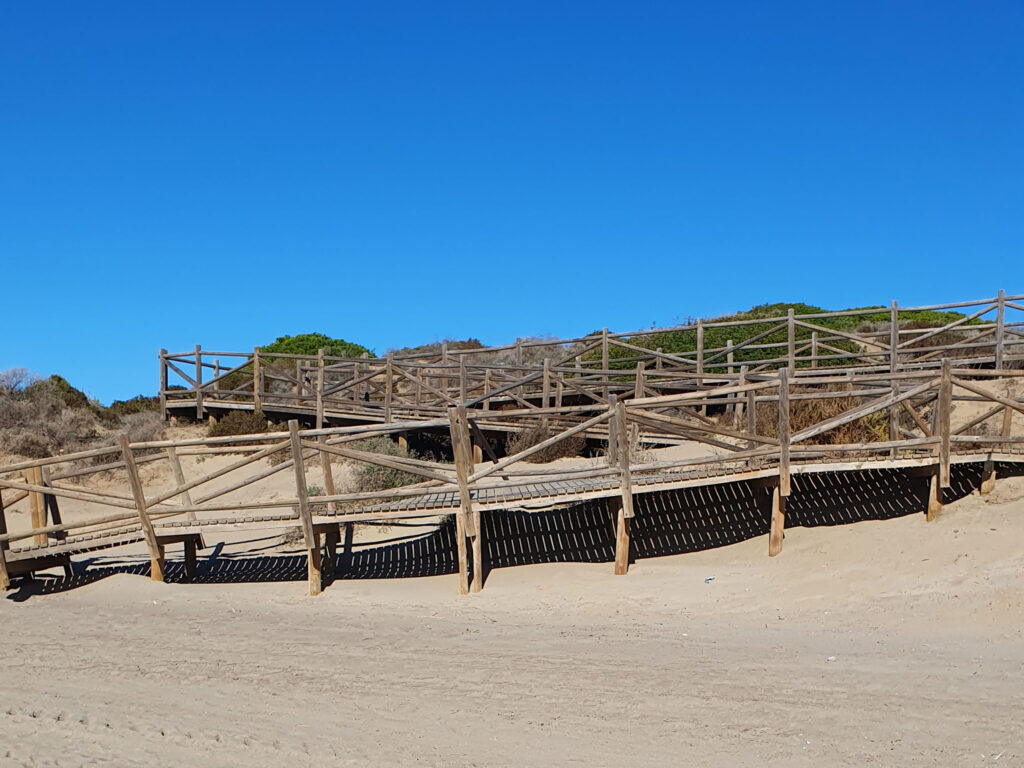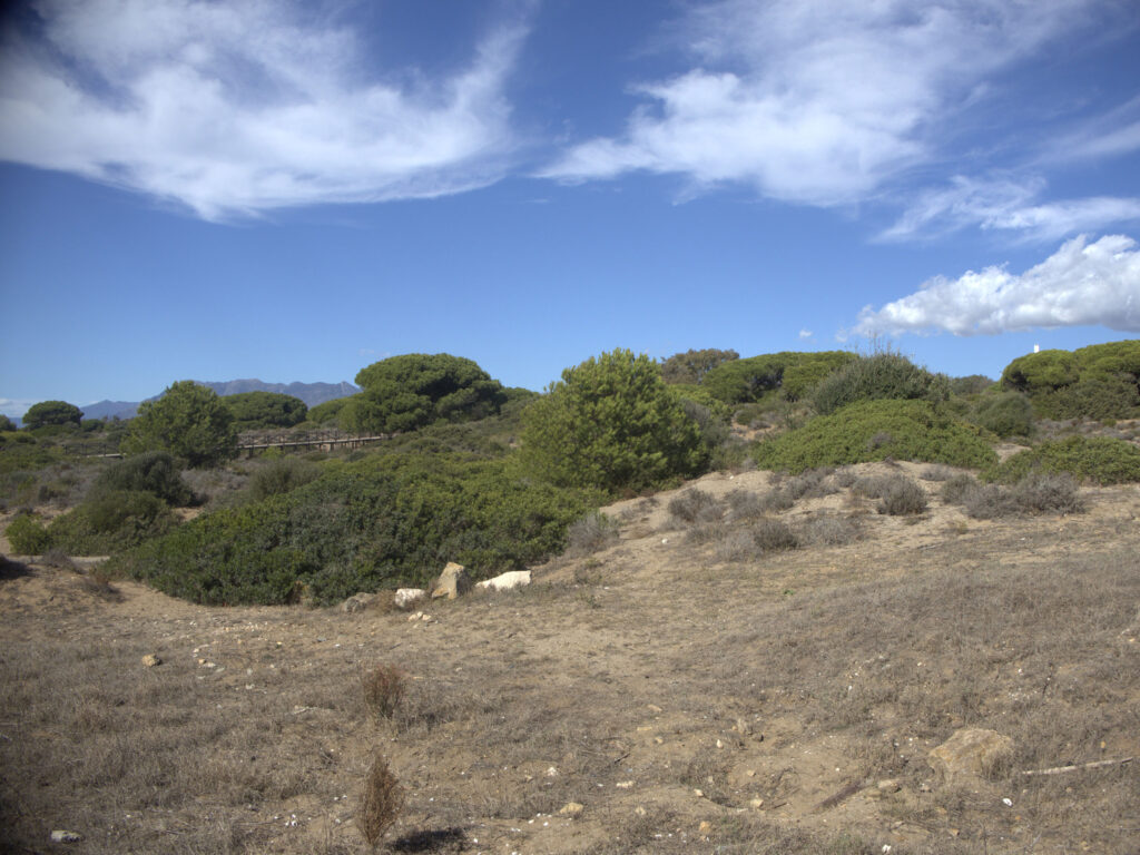 In dieser fantastischen Natur lassen sich drei Dünenarten unterscheiden. Direkt am Meer befinden sich ziemlich bewegliche Dünen, die durch ihre Furchen bzw. Rippel leicht zu erkennen sind. Weiter landeinwärts erheben sich wie eine Abgrenzung parallel zur Küste die inaktiven mobilen Dünen, die bereits über Vegetation verfügen. Noch weiter vom Meer entfernt liegen die unbeweglichen fossilen Dünen, auf denen sich ein dicht bewachsener Pinienhain befindet.