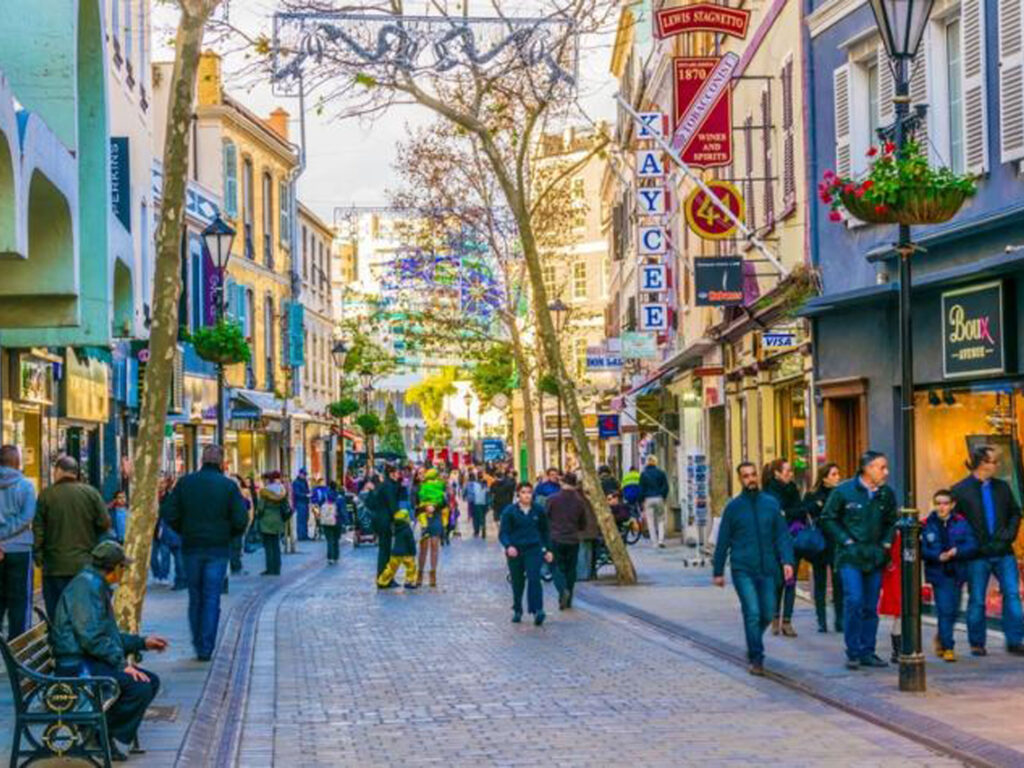 Die meisten Einzelhandelsläden von Gibraltar liegen an der Main Street und dem umliegenden Bereich. Diese lebendige Straße erstreckt sich durch die gesamte Stadt vom Casemates Square bis zu den Southport Gates. Die Geschäfte an dieser fußgängerfreundlichen Durchgangsstraße verkaufen alles von Klamotten bis örtlich hergestelltem Glas. Andere Seitenstraßen wie Irish Town und Engineer Lane sind sehr idyllisch für einen Spaziergang mit einer Reihe an kleiden Läden, die zwischen malerischen, alten Gebäuden liegen.