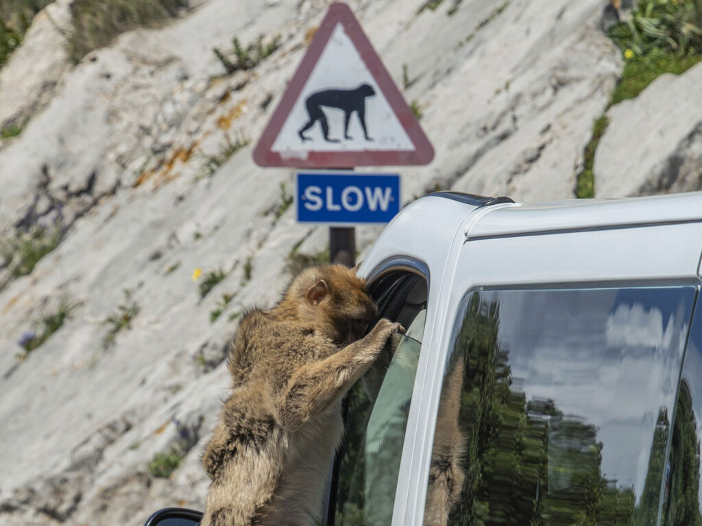 Essen & Taschen – Berberaffen assoziieren Taschen mit Nahrung. Wenn möglich lass deine Taschen im Fahrzeug. Solltest du zu Fuß den Upper Rock erklimmen, halte deine Taschen geschlossen und nah an dich heran gezogen.