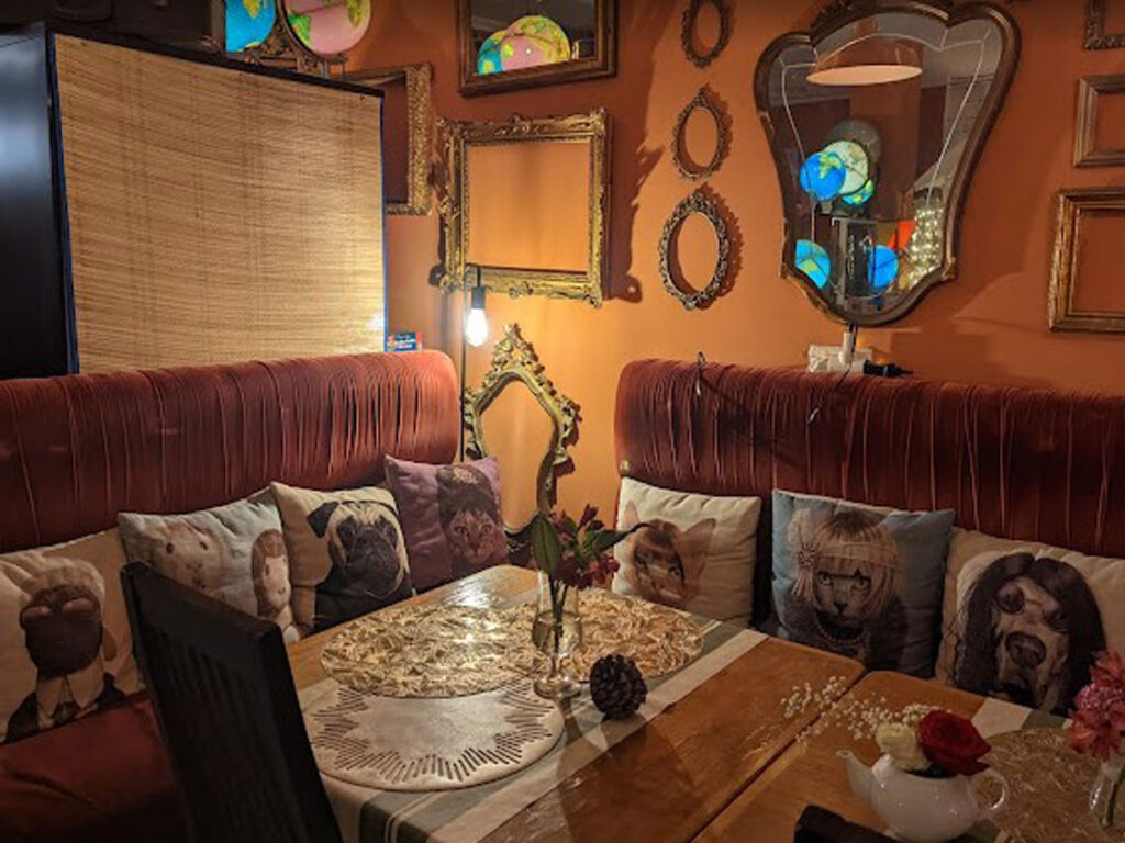 Die Wände sind mit Spiegeln und Bildern ebenfalls wunderschön dekoriert.