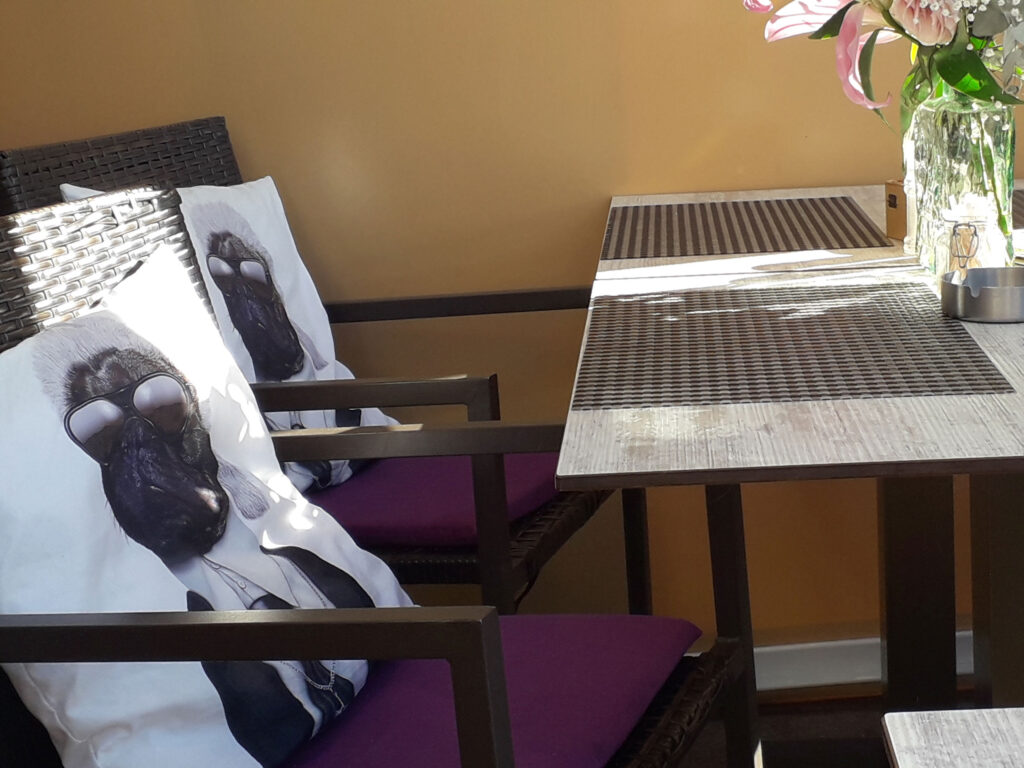 Schon bei meinem ersten Besuch sind mir die unendlich vielen Kissen auf den Stühlen und Sitzecken aufgefallen. Die Auswahl der Motive scheint unendlich und man kann sich nicht satt sehen.