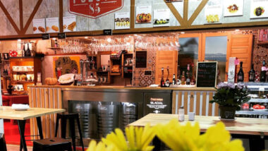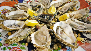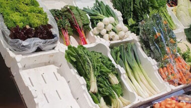 An einigen Ständen stehen kleine Tische, so dass du vor Ort die frischen Speisen genießen kannst.