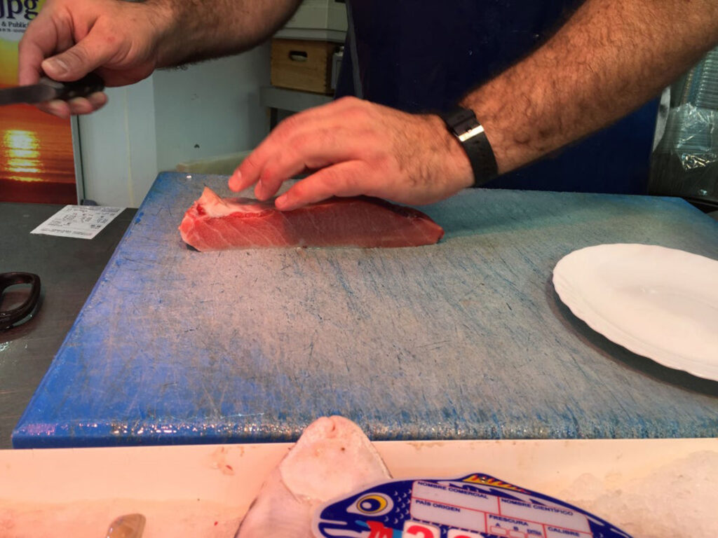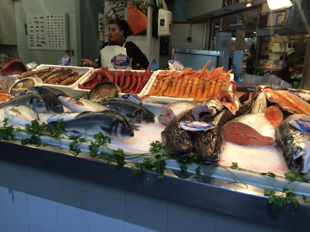 Hier findest du neben fangfrischen Fisch, Meeresfrüchten und Muscheln auch Fleisch, Gewürze, Obst und Gemüse.