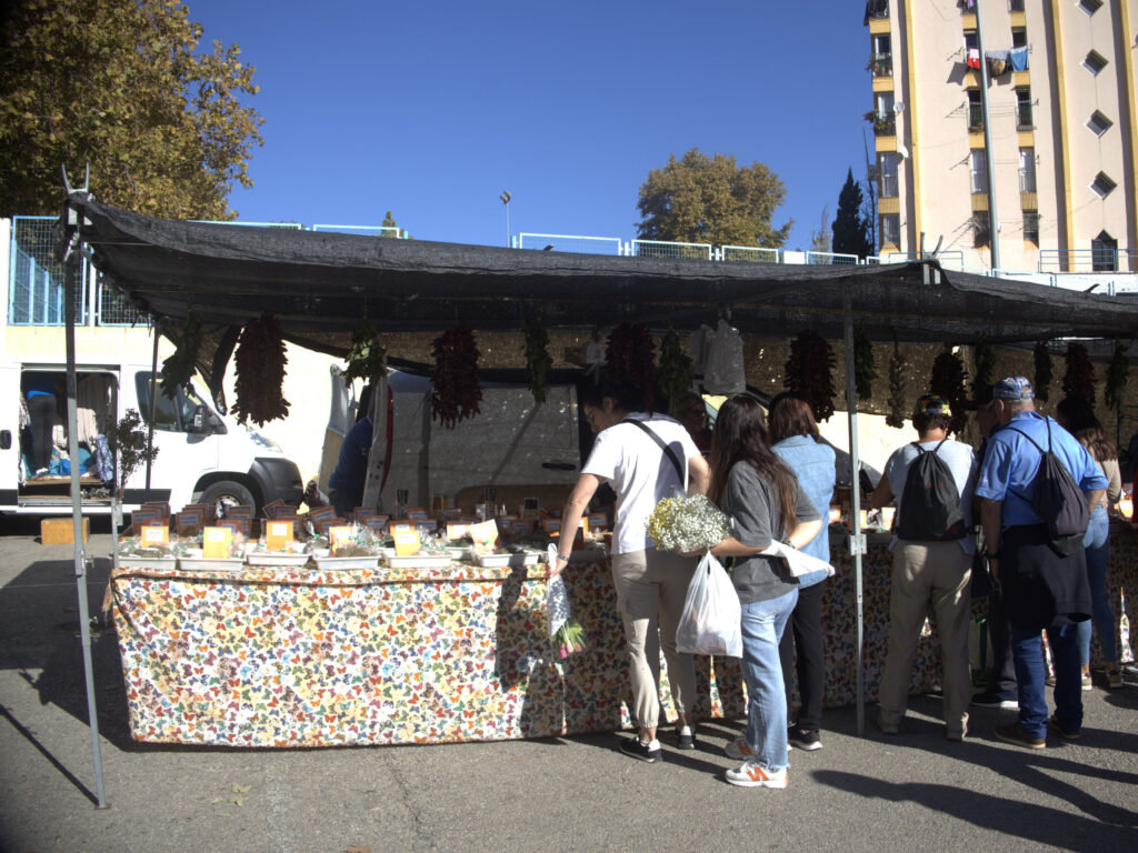 Er besteht zu etwa 75% aus Ständen mit Kleidung, Taschen, Lederwaren und anderen Schnickschnack und zu 25% aus Obst-, Gemüse- und Blumenständen.