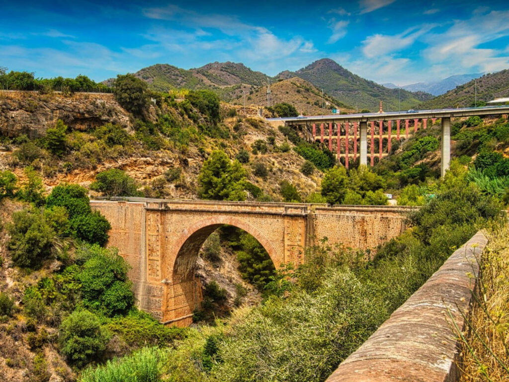 Das Aquädukt steht in der Schlucht Barranco de Maro zwischen den Orten Nerja und Maro. Im Süden führt die N-340 entlang, im Norden die Autobahn A-7. Auf dem Weg von Nerja zu den berühmten Tropfsteinhöhlen fährst du auf der N-340 unweigerlich daran vorbei.