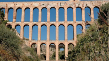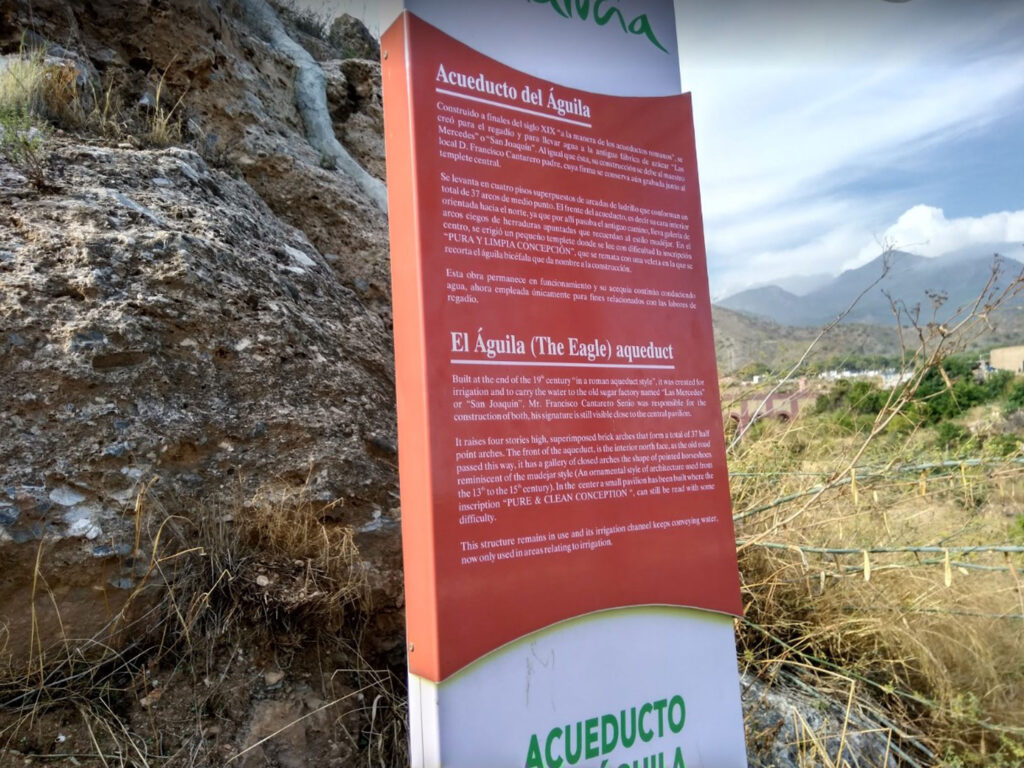 Das Aquädukt Águila (heißt übersetzt der Adler) in Nerja ist ein sehr großes Aquädukt und fällt sofort ins Auge. 37 Bögen, die aus Ziegelstein erbaut wurden, überspannen hier vier Etagen. Insgesamt ist das Aquädukt etwa vierzig Meter hoch. Die Wasserversorgung erfolgt über einen offenen Kanal in der obersten Etage.