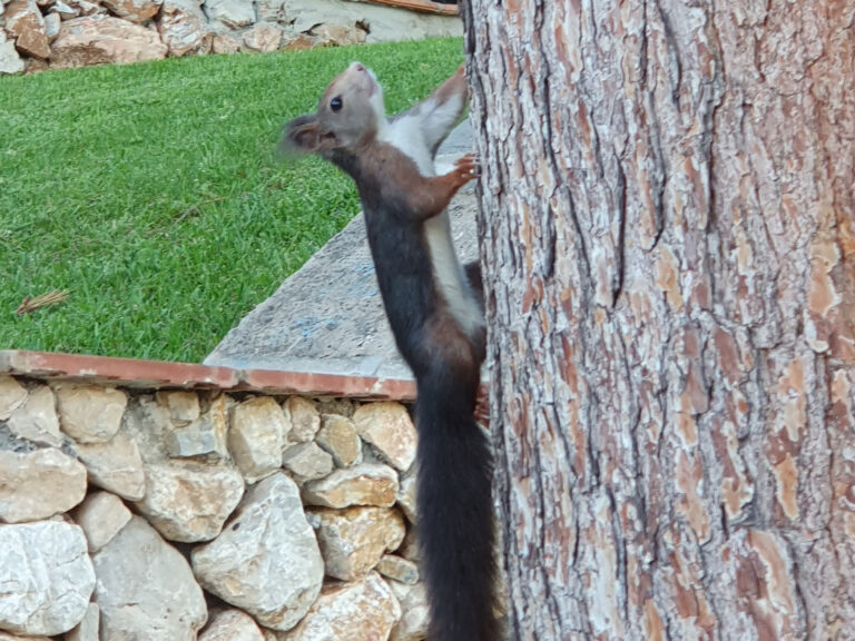 Die Wartezeit bis zum Einlass kann man gut mit Fotografieren des Außengeländes überbrücken. Dabei kann es vorkommen, das einen Eichhörnchen begegnen.
