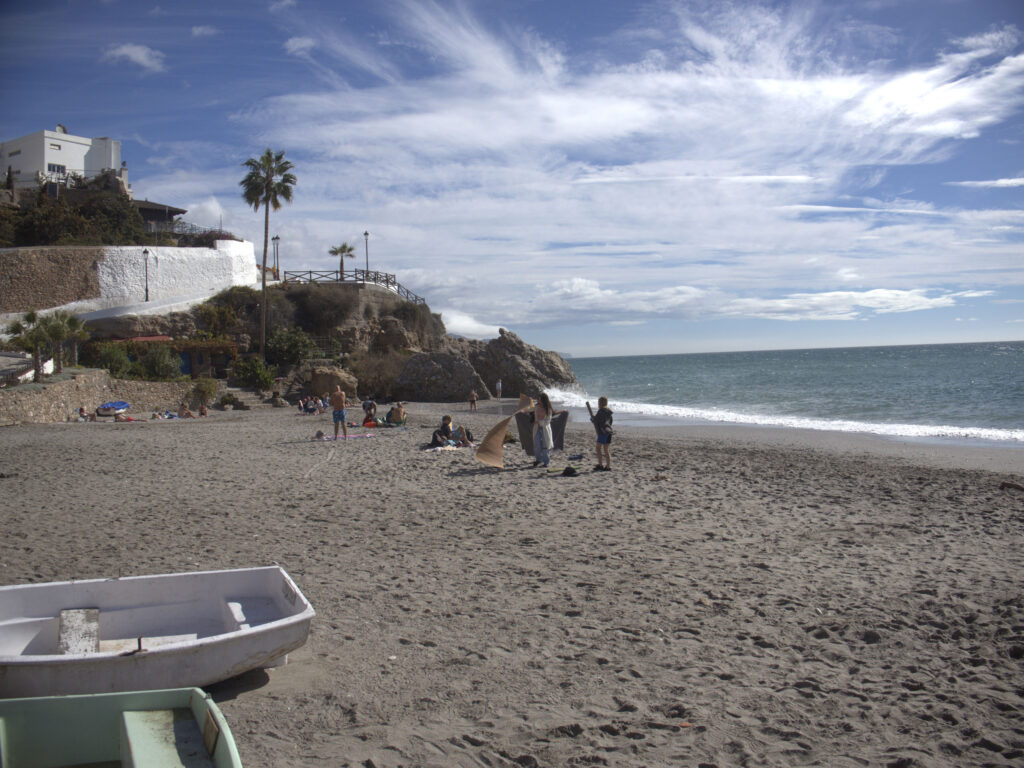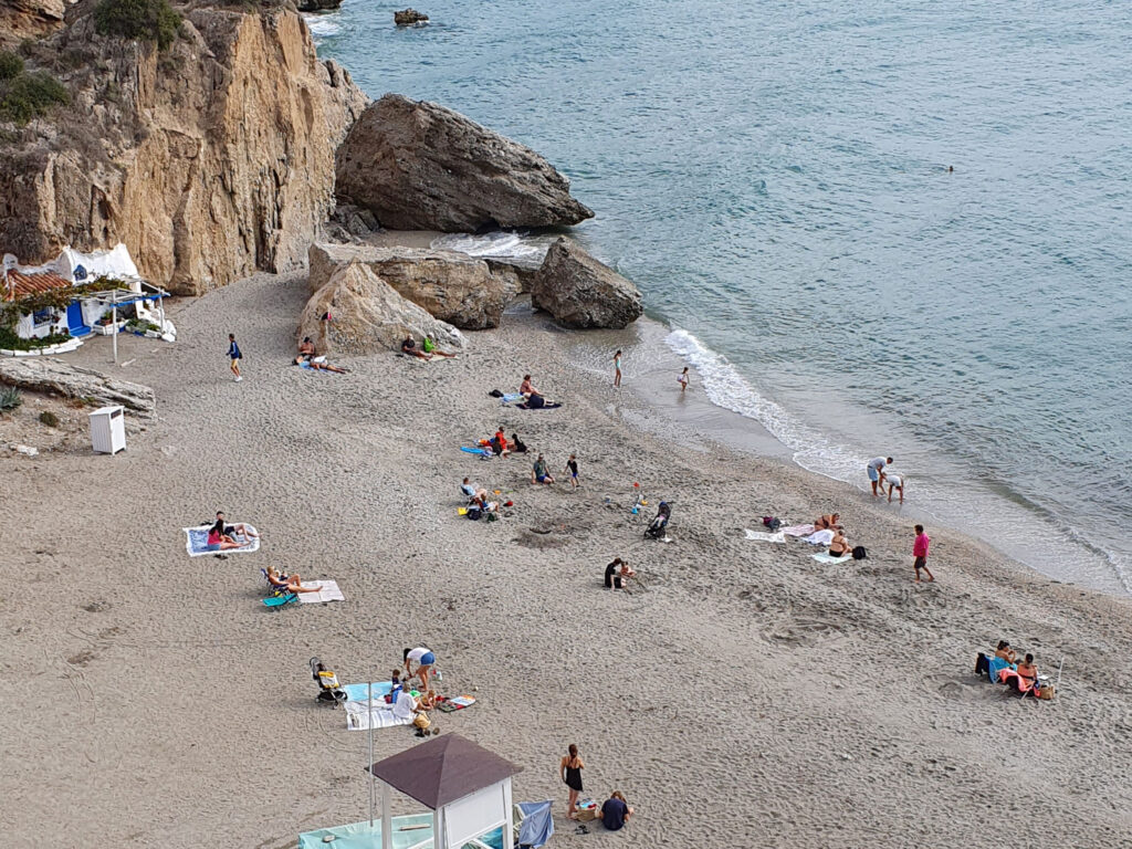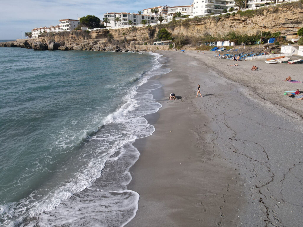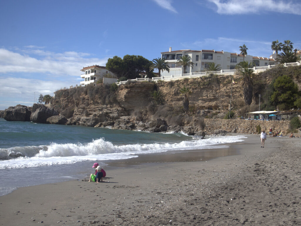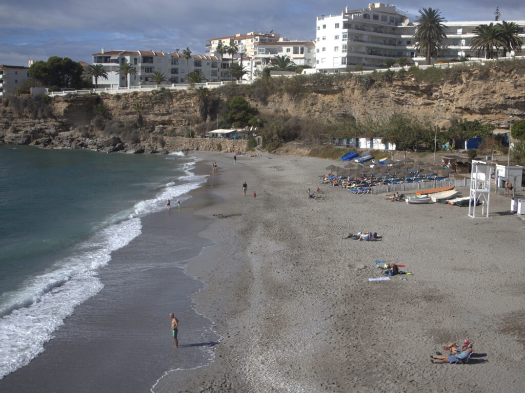 Nur etwa 5 Gehminuten vom Balcón de Europa liegt dieser ca. 200 m lange und 20 m breite Strand im Herzen von Nerja, weshalb er im Sommer sehr gut besucht ist.