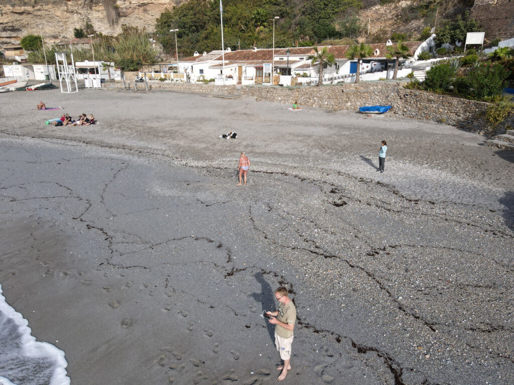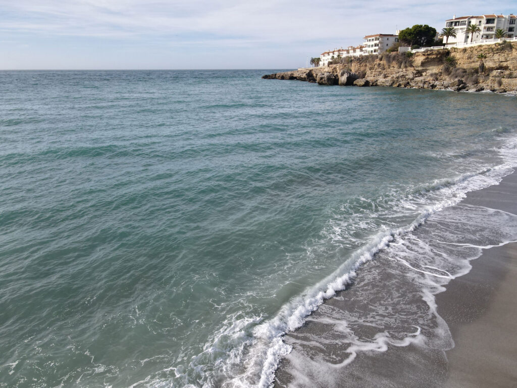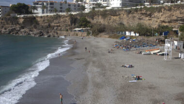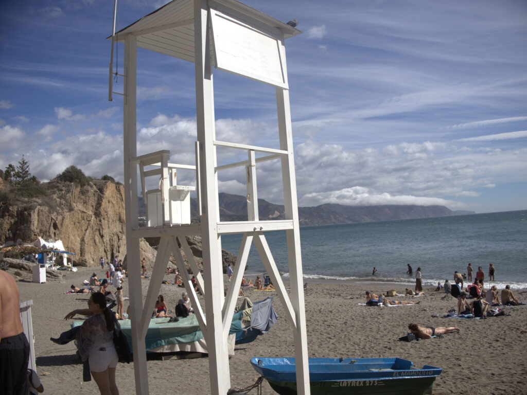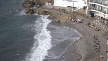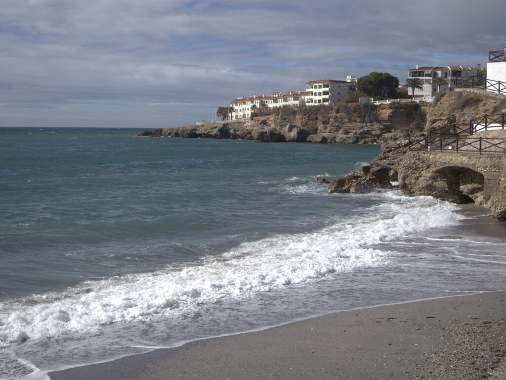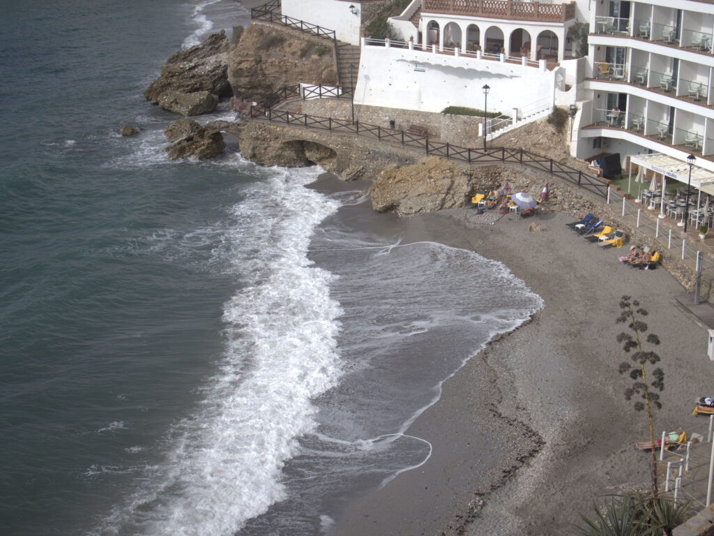 Nur etwa 5 Gehminuten vom Balcón de Europa liegt dieser ca. 200 m lange und 20 m breite Strand im Herzen von Nerja, weshalb er im Sommer sehr gut besucht ist.