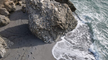 Direkt am Balcón de Europa befindet sich der Playa de la Calahonda. Von oben hast du einen wunderschönen Ausblick auf den Strand mit den Bergen im Hintergrund. Hier solltest du unbedingt ein Foto machen.