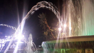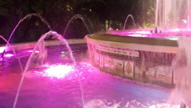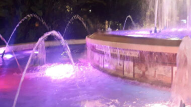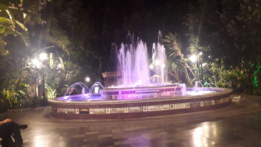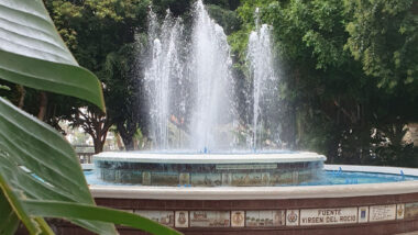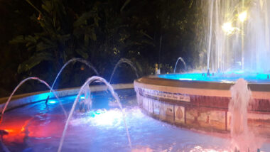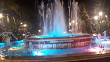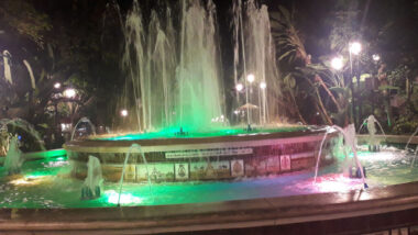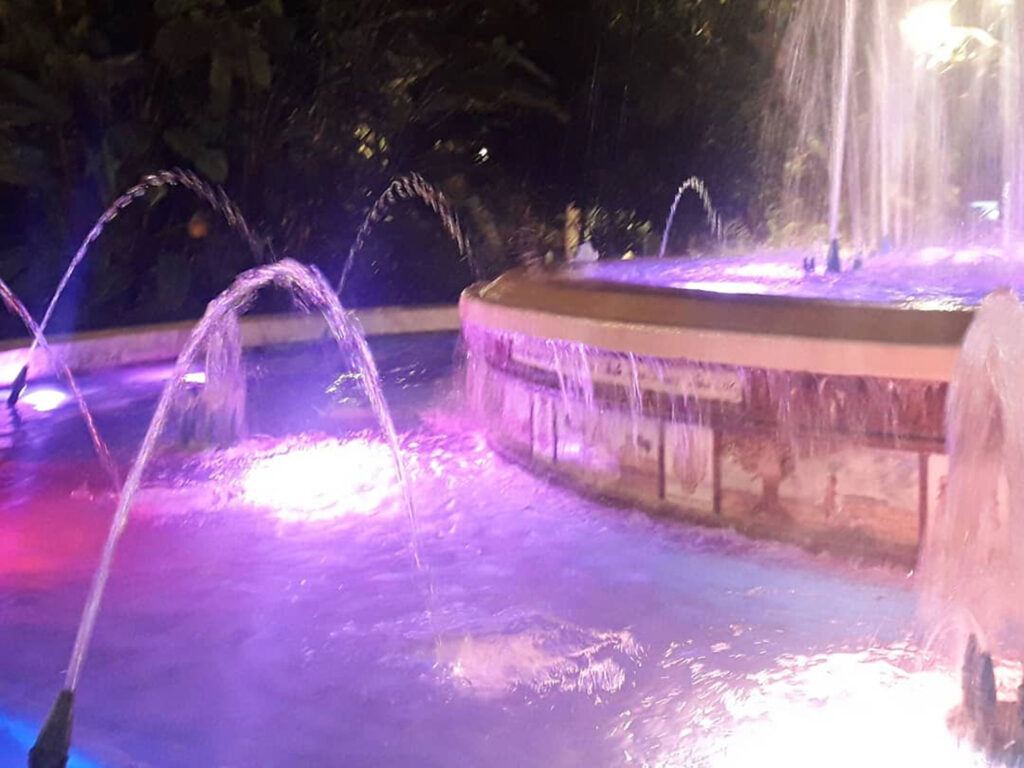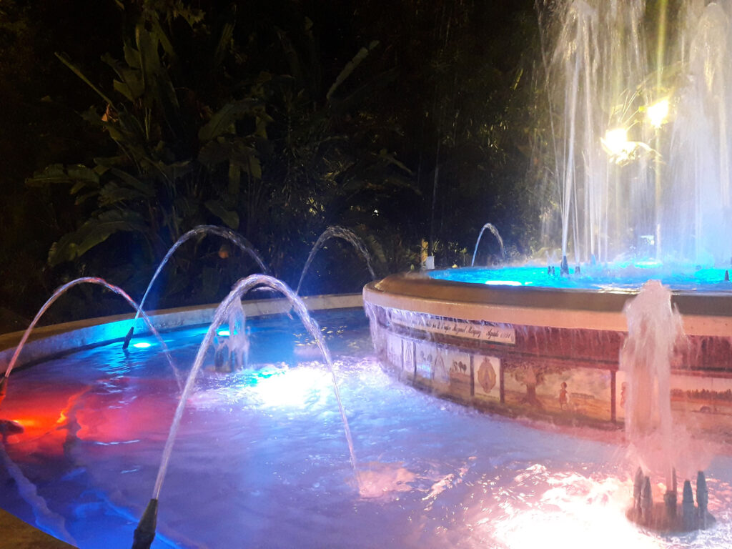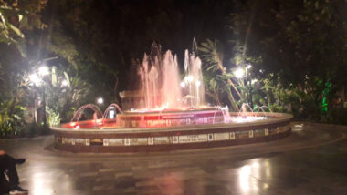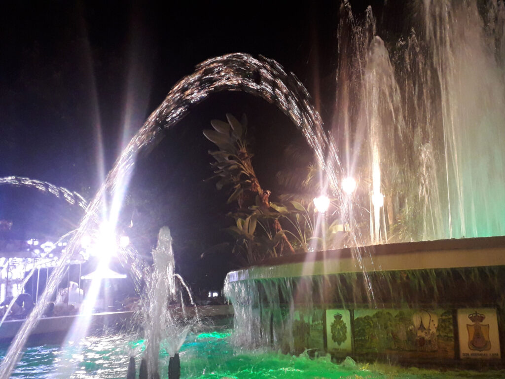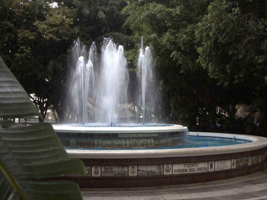 Am Abend wird der Fuente de la Virgen del Rocio mit Licht angestrahlt, dass alle paar Sekunden die Farbe wechselt und eine unvergleichbare Atmosphäre bietet.