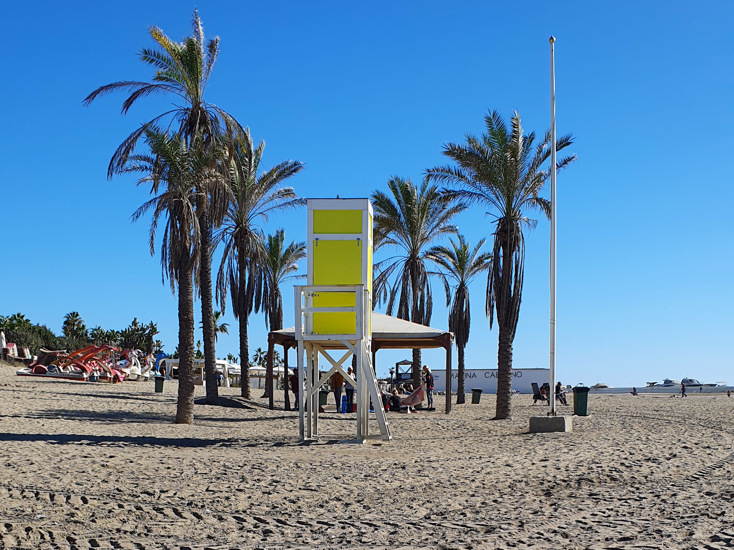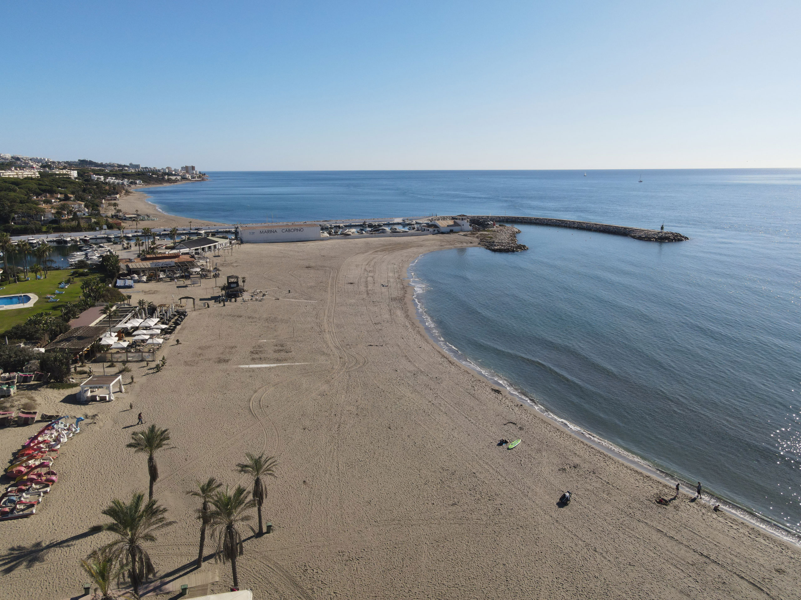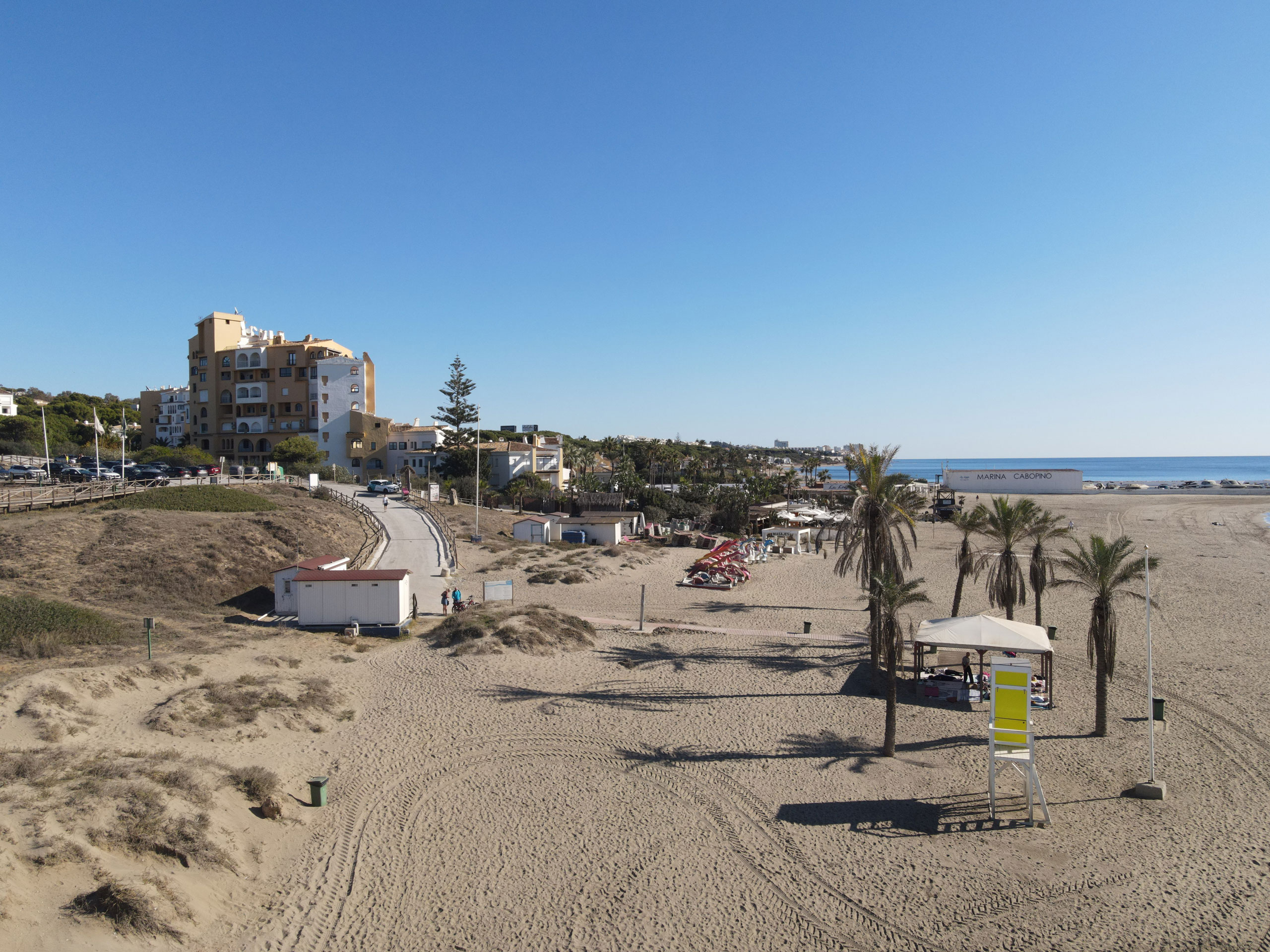 Playa Cabopino wird regelmäßig gereinigt und es befinden sich Restaurants, Bars und ein Kiosk in unmittelbaren Nähe. Der Strandabschnitt ist mit der bandera azul (blauen Flagge) für seine Wasserqualität ausgezeichnet.