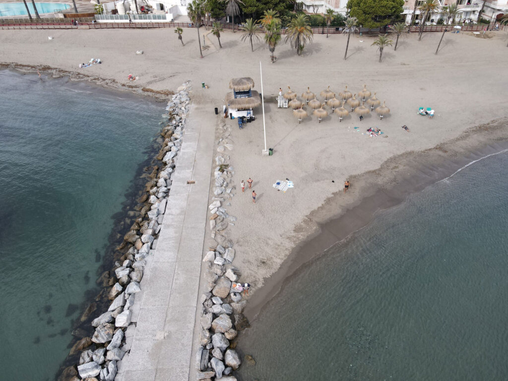 Der Sand ist eher dunkel und grobkörnig. Mit einer Länge von ca. 1.000 m und ca. 30 m Breite ist er einer der größeren Strände Marbellas.