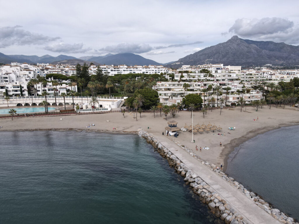 Playa de Nueva Andalucia wird regelmäßig gereinigt und es befinden sich zahlreiche Restaurants, Bars und Chiringuitos in der unmittelbaren Nähe.
