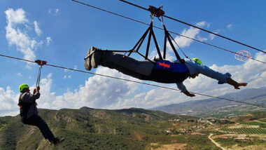 Rase mit bis zu 100 km/h die 1350 m lange Zipline ins Tal hinunter und spüre den Wind in deinem Gesicht und das Adrenalin in deinen Körper.
